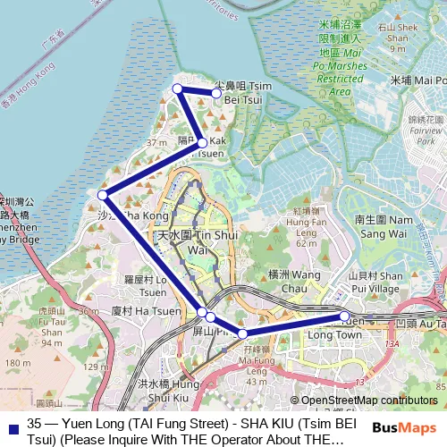 Bus 35 - Yuen Long (TAI Fung Street) - SHA KIU (Tsim BEI Tsui) (Please Inquire With THE Operator About THE Payment Arrangement OF THE TWO-WAY Fare ON This Route.) Schedule in Yuen Long