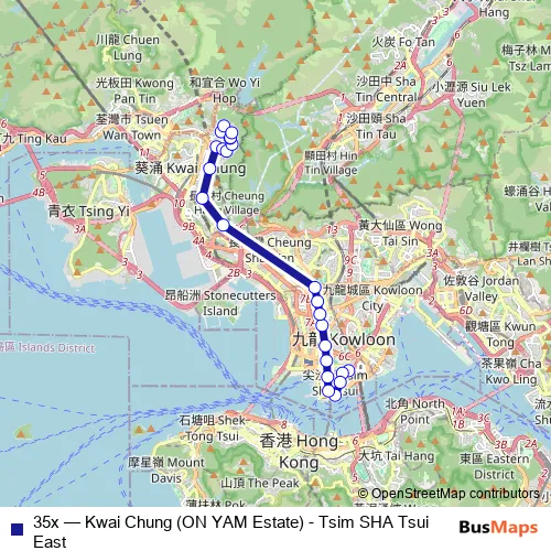 Bus 35x - Kwai Chung (ON YAM Estate) - Tsim SHA Tsui East: Full Schedule in Tsuen Wan