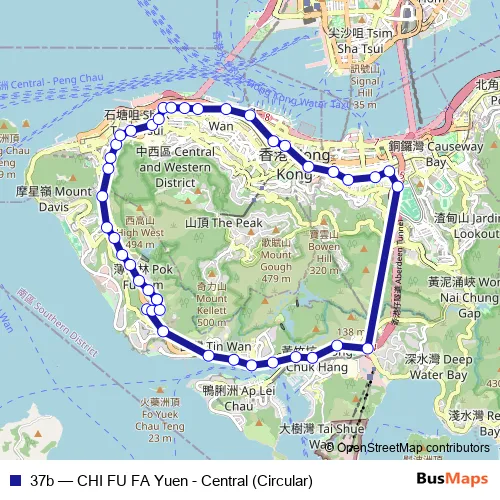 The first stop of the 37b bus route is [Ctb] CHI Fu and the last stop is [Ctb] CHI Fu. 37b (CHI FU FA Yuen - Central (Circular)) is operational during everyday.