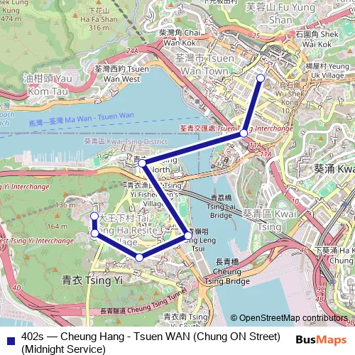 Click here to view the nearest 402s - Cheung Hang - Tsuen WAN (Chung ON Street) (Midnight Service) bus stop.