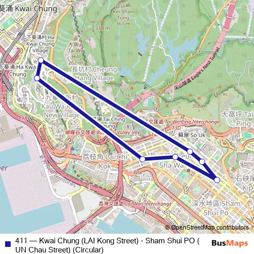 Click here to view the nearest 411 - Kwai Chung (LAI Kong Street) - Sham Shui PO (UN Chau Street) (Circular) bus stop.