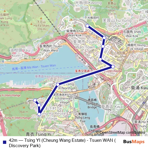 Bus 42m - Tsing YI (Cheung Wang Estate) - Tsuen WAN (Discovery Park): Full Schedule in Tsuen Wan