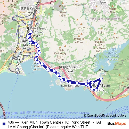 43b Bus - Tuen MUN Town Centre (HO Pong Street) - TAI LAM Chung (Circular) (Please Inquire With THE Operator About THE Payment Arrangement OF THE TWO-WAY Fare ON This Route.)