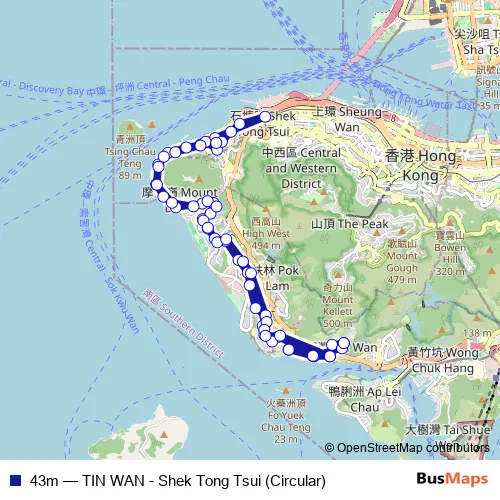 Click here to view the nearest 43m - TIN WAN - Shek Tong Tsui (Circular) bus stop.