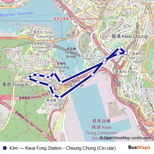 Bus 43m - Kwai Fong Station - Cheung Chung (Circular) in Tsuen Wan: Stops & Timetable