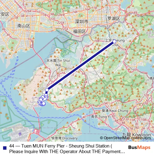 Click here to view the nearest 44 - Tuen MUN Ferry Pier - Sheung Shui Station (Please Inquire With THE Operator About THE Payment Arrangement OF THE TWO-WAY Fare ON This Route.) bus stop.