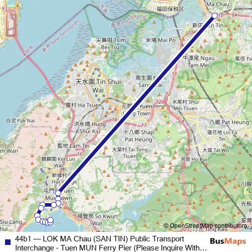 Click here to view the nearest 44b1 - LOK MA Chau (SAN TIN) Public Transport Interchange - Tuen MUN Ferry Pier (Please Inquire With THE Operator About THE Payment Arrangement OF THE TWO-WAY Fare ON This Route.) bus stop.