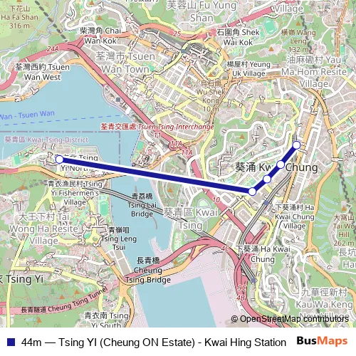 Click here to view the nearest 44m - Tsing YI (Cheung ON Estate) - Kwai Hing Station bus stop.