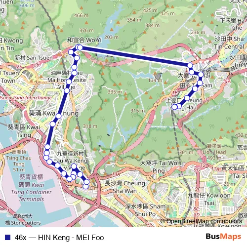 Mei Foo|[Kmb] MEI FOO BUS Terminus and the last stop is [Kmb] HIN Keng BUS Terminus. 46x (HIN Keng - MEI Foo) is operational during everyday.