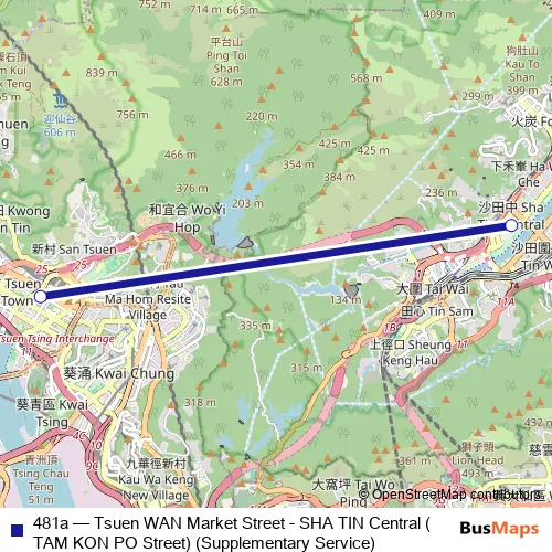 See why over 2 million users trust and consider busmaps.com as the best public transport website. busmaps gives you Tsuen Wan Buses suggested routes, real-time bus tracker, line route maps in Tsuen Wan, and helps to find the closest 481a bus stops near you. No internet available? Download an offline PDF map and bus schedule for the 481a bus to take on your trip.