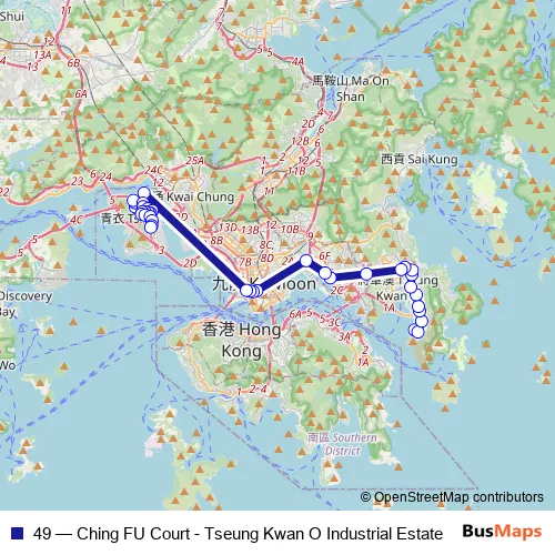 Bus 49 - Ching FU Court - Tseung Kwan O Industrial Estate: Full Schedule in Tsuen Wan