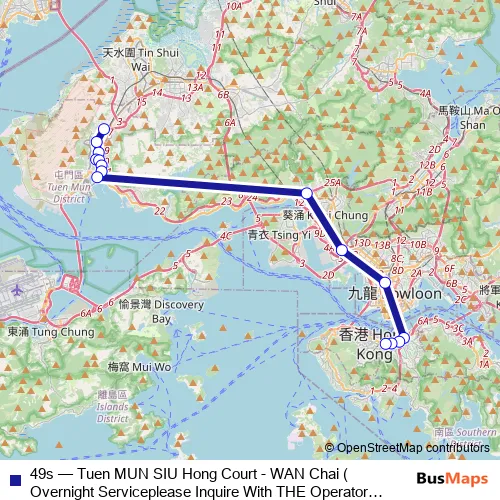 Click here to view the nearest 49s - Tuen MUN SIU Hong Court - WAN Chai (Overnight Serviceplease Inquire With THE Operator About THE Payment Arrangement OF THE TWO-WAY Fare ON This Route.) bus stop.