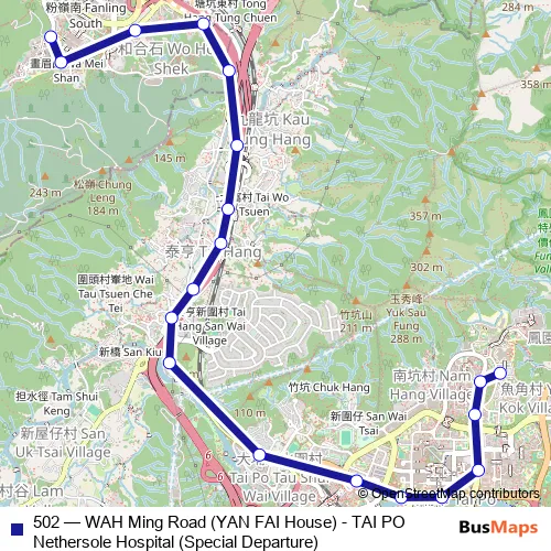 Bus 502 - WAH Ming Road (YAN FAI House) - TAI PO Nethersole Hospital (Special Departure): Full Schedule in Tai Po