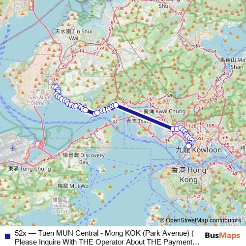 Bus 52x - Tuen MUN Central - Mong KOK (Park Avenue) (Please Inquire With THE Operator About THE Payment Arrangement OF THE TWO-WAY Fare ON This Route.) Schedule in Tuen Mun