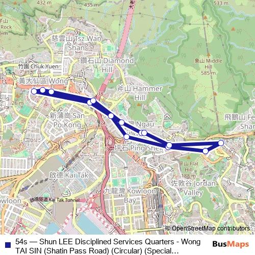 Click here to view the nearest 54s - Shun LEE Disciplined Services Quarters - Wong TAI SIN (Shatin Pass Road) (Circular) (Special Departuresplease Inquire With THE Operator About THE Payment Arrangement OF THE TWO-WAY Fare ON This Route.) bus stop.