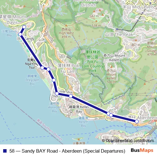 Bus 58 - Sandy BAY Road - Aberdeen (Special Departures): Full Schedule in Hong Kong