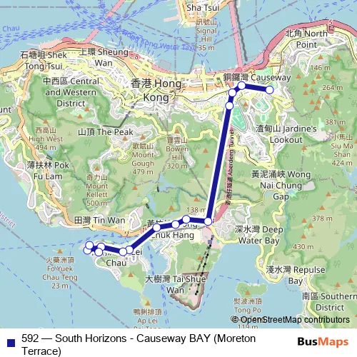 Bus 592 - South Horizons - Causeway BAY (Moreton Terrace): Full Schedule in Hong Kong