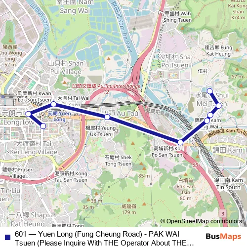 Click here to view the nearest 601 - Yuen Long (Fung Cheung Road) - PAK WAI Tsuen (Please Inquire With THE Operator About THE Payment Arrangement OF THE TWO-WAY Fare ON This Route.) bus stop.