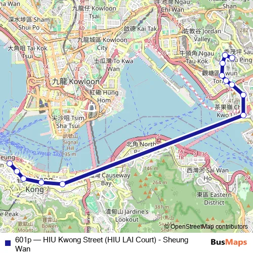 Click here to view the nearest 601p - HIU Kwong Street (HIU LAI Court) - Sheung Wan bus stop.