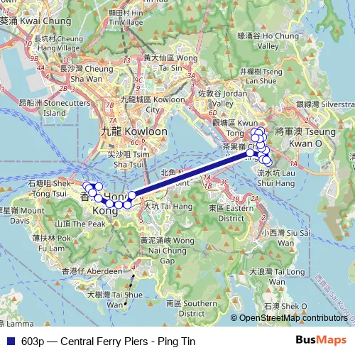 Bus 603p - Central Ferry Piers - Ping Tin in Kwun Tong: Stops & Timetable
