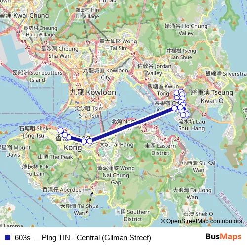Bus 603s - Ping TIN - Central (Gilman Street) in Kwun Tong: Stops & Timetable
