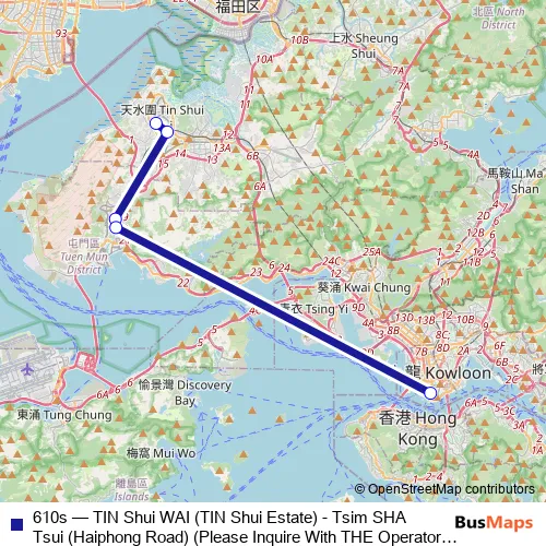 Click here to view the nearest 610s - TIN Shui WAI (TIN Shui Estate) - Tsim SHA Tsui (Haiphong Road) (Please Inquire With THE Operator About THE Payment Arrangement OF THE TWO-WAY Fare ON This Route.) bus stop.