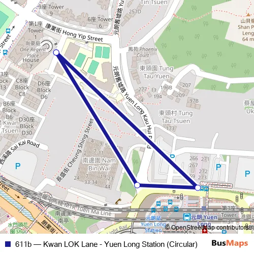 The first stop of the 611b bus route is Kwan LOK Lane, Near ONE Regent Place House 1 and the last stop is Kwan LOK Lane, Near ONE Regent Place House 1. 611b (Kwan LOK Lane - Yuen Long Station (Circular)) is operational during everyday.