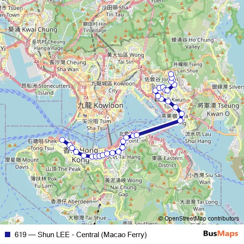 Bus 619 - Shun LEE - Central (Macao Ferry): Full Schedule in Kwun Tong