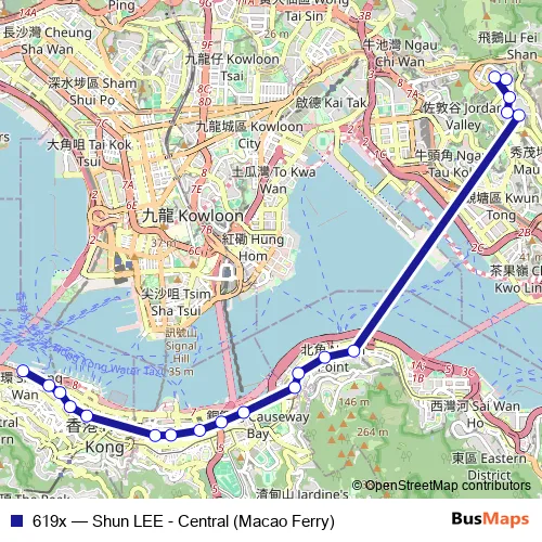 Click here to view the nearest 619x - Shun LEE - Central (Macao Ferry) bus stop.