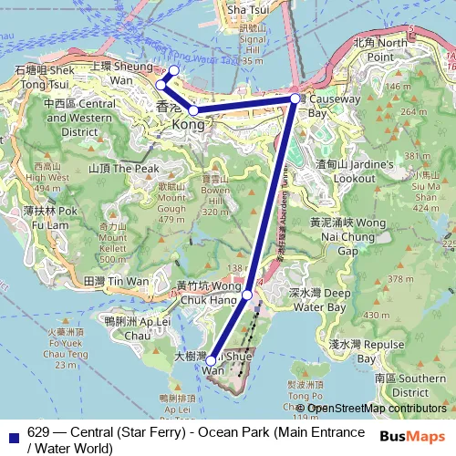 Click here to view the nearest 629 - Central (Star Ferry) - Ocean Park (Main Entrance / Water World) bus stop.