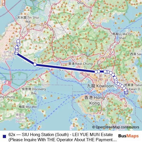 Click here to view the nearest 62x - SIU Hong Station (South) - LEI YUE MUN Estate (Please Inquire With THE Operator About THE Payment Arrangement OF THE TWO-WAY Fare ON This Route.) bus stop.