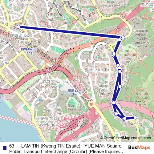 Click here to view the nearest 63 - LAM TIN (Kwong TIN Estate) - YUE MAN Square Public Transport Interchange (Circular) (Please Inquire With THE Operator About THE Payment Arrangement OF THE TWO-WAY Fare ON This Route.) bus stop.