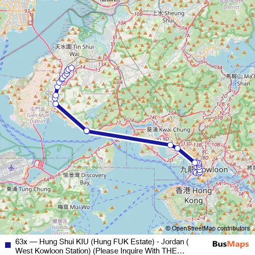 Kowloon Motor Bus 63x Hung Shui KIU (Hung FUK Estate) - Jordan (West Kowloon Station) (Please Inquire With THE Operator About THE Payment Arrangement OF THE TWO-WAY Fare ON This Route.) Bus