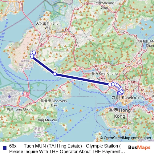 Kowloon Motor Bus 66x Tuen MUN (TAI Hing Estate) - Olympic Station (Please Inquire With THE Operator About THE Payment Arrangement OF THE TWO-WAY Fare ON This Route.) Bus
