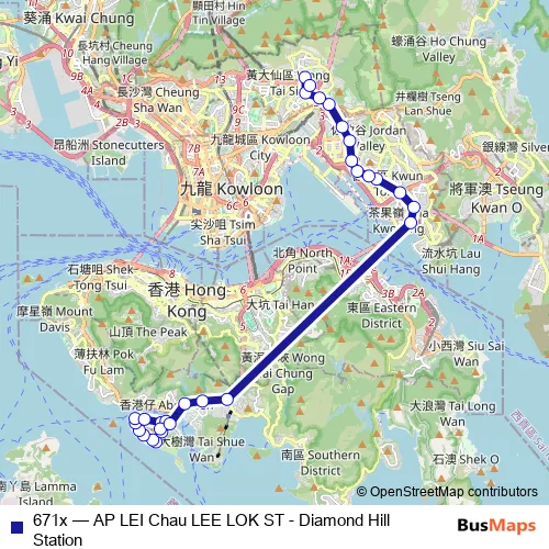 Click here to view the nearest 671x - AP LEI Chau LEE LOK ST - Diamond Hill Station bus stop.