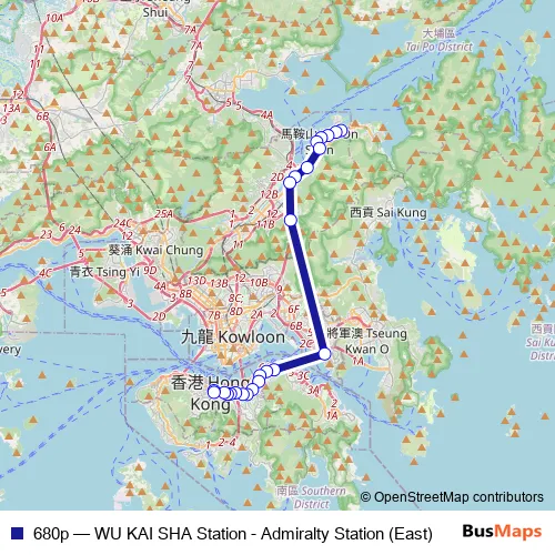 Click here to view the nearest 680p - WU KAI SHA Station - Admiralty Station (East) bus stop.