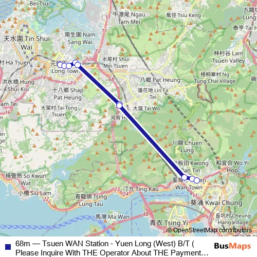 Bus 68m - Tsuen WAN Station - Yuen Long (West) B/T (Please Inquire With THE Operator About THE Payment Arrangement OF THE TWO-WAY Fare ON This Route.) in Yuen Long: Stops & Timetable