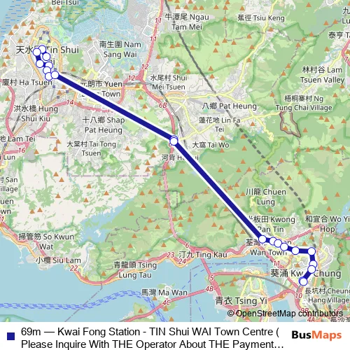 Bus 69m - Kwai Fong Station - TIN Shui WAI Town Centre (Please Inquire With THE Operator About THE Payment Arrangement OF THE TWO-WAY Fare ON This Route.): Full Schedule in Yuen Long