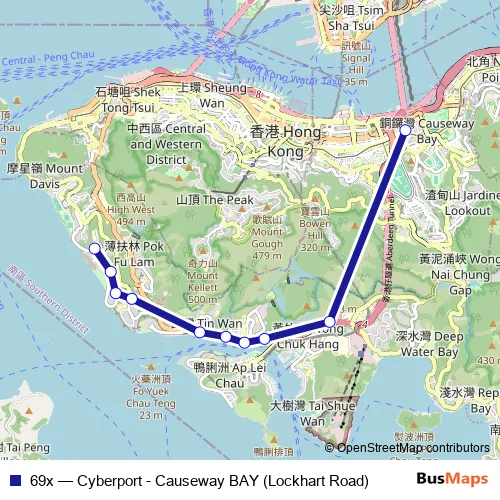 See why over 2 million users trust and consider busmaps.com as the best public transport website. busmaps gives you Hong Kong Buses suggested routes, real-time bus tracker, line route maps in Hong Kong, and helps to find the closest 69x bus stops near you. No internet available? Download an offline PDF map and bus schedule for the 69x bus to take on your trip.