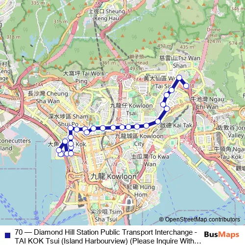 70 (Diamond Hill Station Public Transport Interchange - TAI KOK Tsui (Island Harbourview) (Please Inquire With THE Operator About THE Payment Arrangement OF THE TWO-WAY Fare ON This Route.)) Bus in Mong Kok