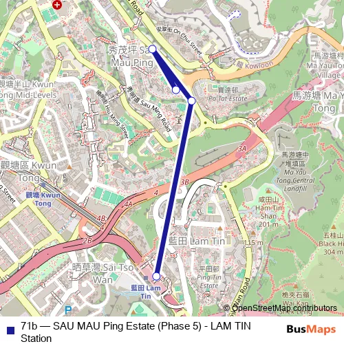 The first stop of the 71b bus route is LEI YUE MUN Road Outside LAM TIN Public Transport Interchange and the last stop is SAU Fung Street, Near SAU CHI House, SAU MAU Ping Estate. 71b (SAU MAU Ping Estate (Phase 5) - LAM TIN Station) is operational during everyday.