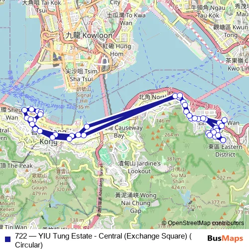 Yiu Tung Estate. 722 (YIU Tung Estate - Central (Exchange Square) (Circular)) is operational during everyday.