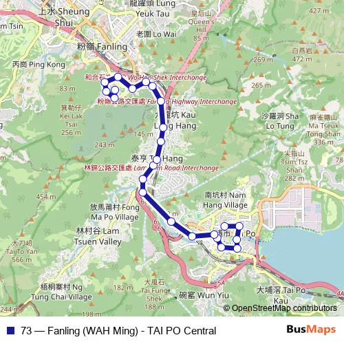 Click here to view the nearest 73 - Fanling (WAH Ming) - TAI PO Central bus stop.