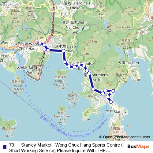 73 Bus - Stanley Market - Wong Chuk Hang Sports Centre (Short Working Service) Please Inquire With THE Operator About THE Payment Arrangement OF THE TWO-WAY Fare ON This Route.)