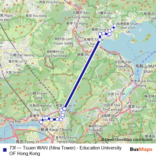 See why over 2 million users trust and consider busmaps.com as the best public transport website. busmaps gives you Tsuen Wan Buses suggested routes, real-time bus tracker, line route maps in Tsuen Wan, and helps to find the closest 73f bus stops near you. No internet available? Download an offline PDF map and bus schedule for the 73f bus to take on your trip.