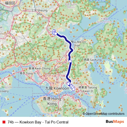 Bus 74b - Kowloon Bay - Tai Po Central in Tai Po: Stops & Timetable