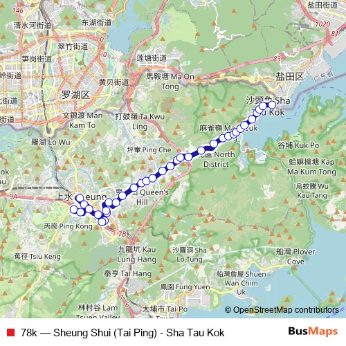 Click here to view the nearest 78k - Sheung Shui (Tai Ping) - Sha Tau Kok bus stop.
