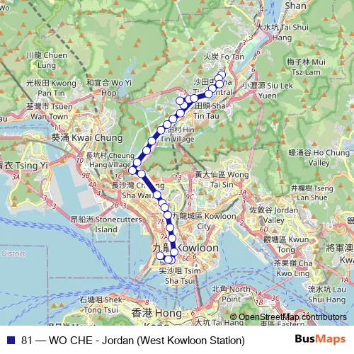 Bus 81 - WO CHE - Jordan (West Kowloon Station) in Sha Tin: Stops & Timetable