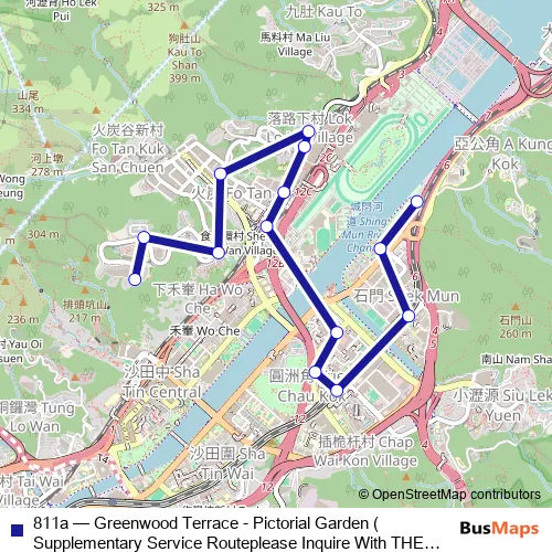 See why over 2 million users trust and consider busmaps.com as the best public transport website. busmaps gives you Sha Tin Buses suggested routes, real-time bus tracker, line route maps in Sha Tin, and helps to find the closest 811a bus stops near you. No internet available? Download an offline PDF map and bus schedule for the 811a bus to take on your trip.