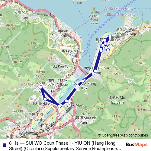 The first stop of the 811s bus route is SUI WO Court Phase I|Sui WO Court|Sui WO Court BUS Terminus and the last stop is SUI WO Court Phase I|Sui WO Court|Sui WO Court BUS Terminus. 811s (SUI WO Court Phase I - YIU ON (Hang Hong Street) (Circular) (Supplementary Service Routeplease Inquire With THE Operator About THE Payment Arrangement OF THE TWO-WAY Fare ON This Route.)) is operational during everyday.